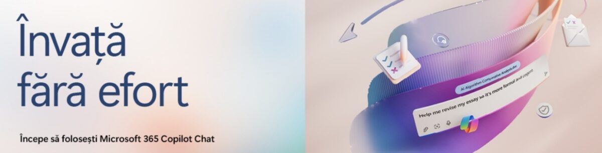Microsoft Copilot Chat e asistentul tău AI care te ajută să ajungi mai rapid la succes academic, simplificând procesul de învățare. Copilot Chat îți economisește timp și te ajută